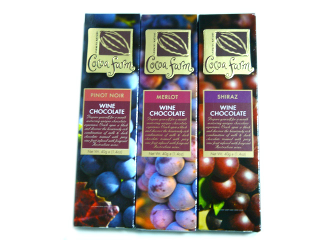 それぞれのワインに漬けたレーズンを、チョコレートに混ぜ込んであります。