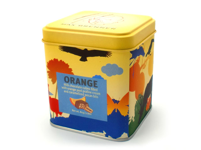 原材料:砂糖、ヘーゼルナッツ、全粉乳、ココアバター、キャラメルピーカン粒(ピーカン、砂糖、植物油油脂)、カカオマス、植物油脂、ココアパウダー、オレンジオイル、乳化剤(大豆由来)、香料