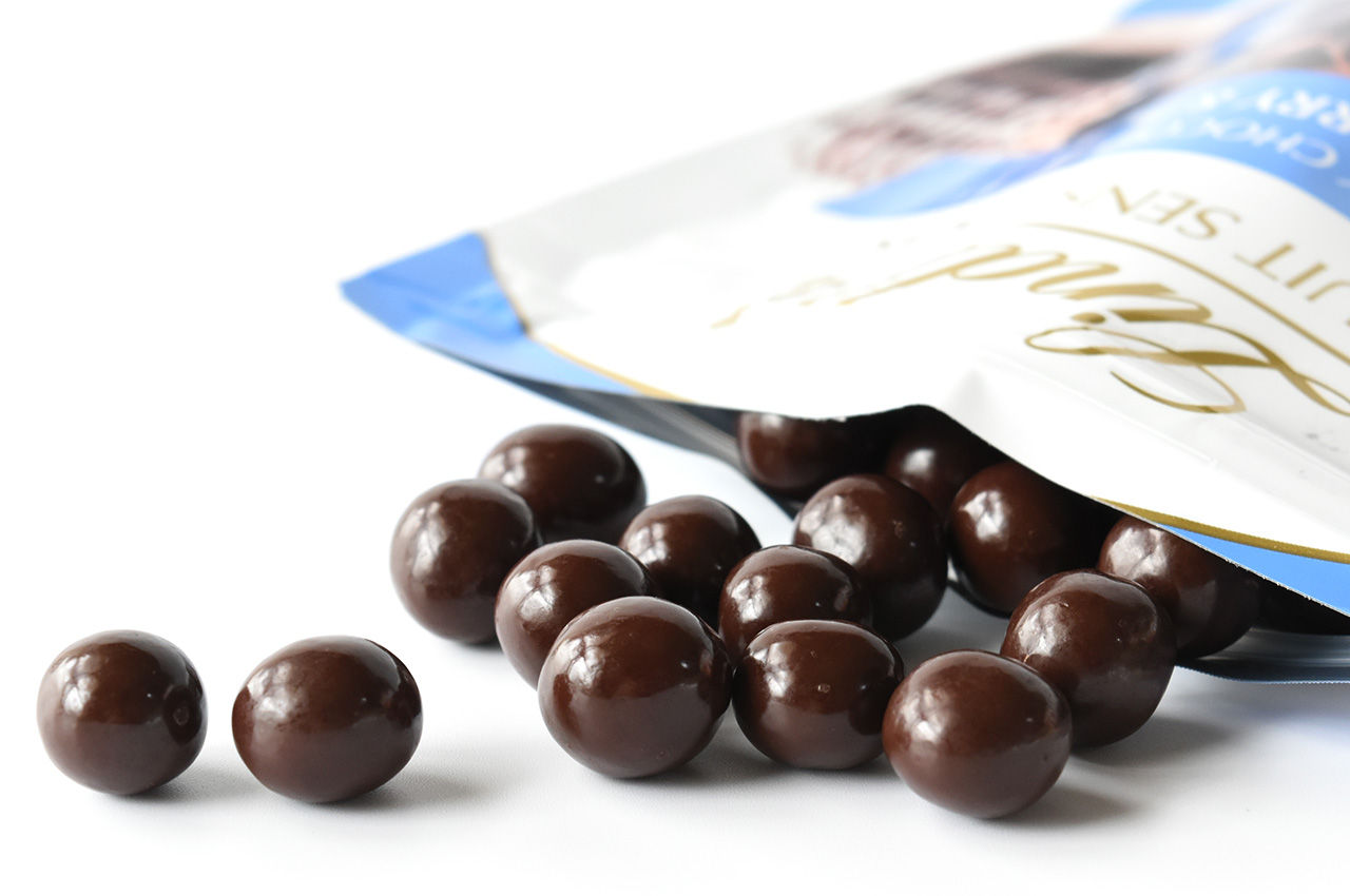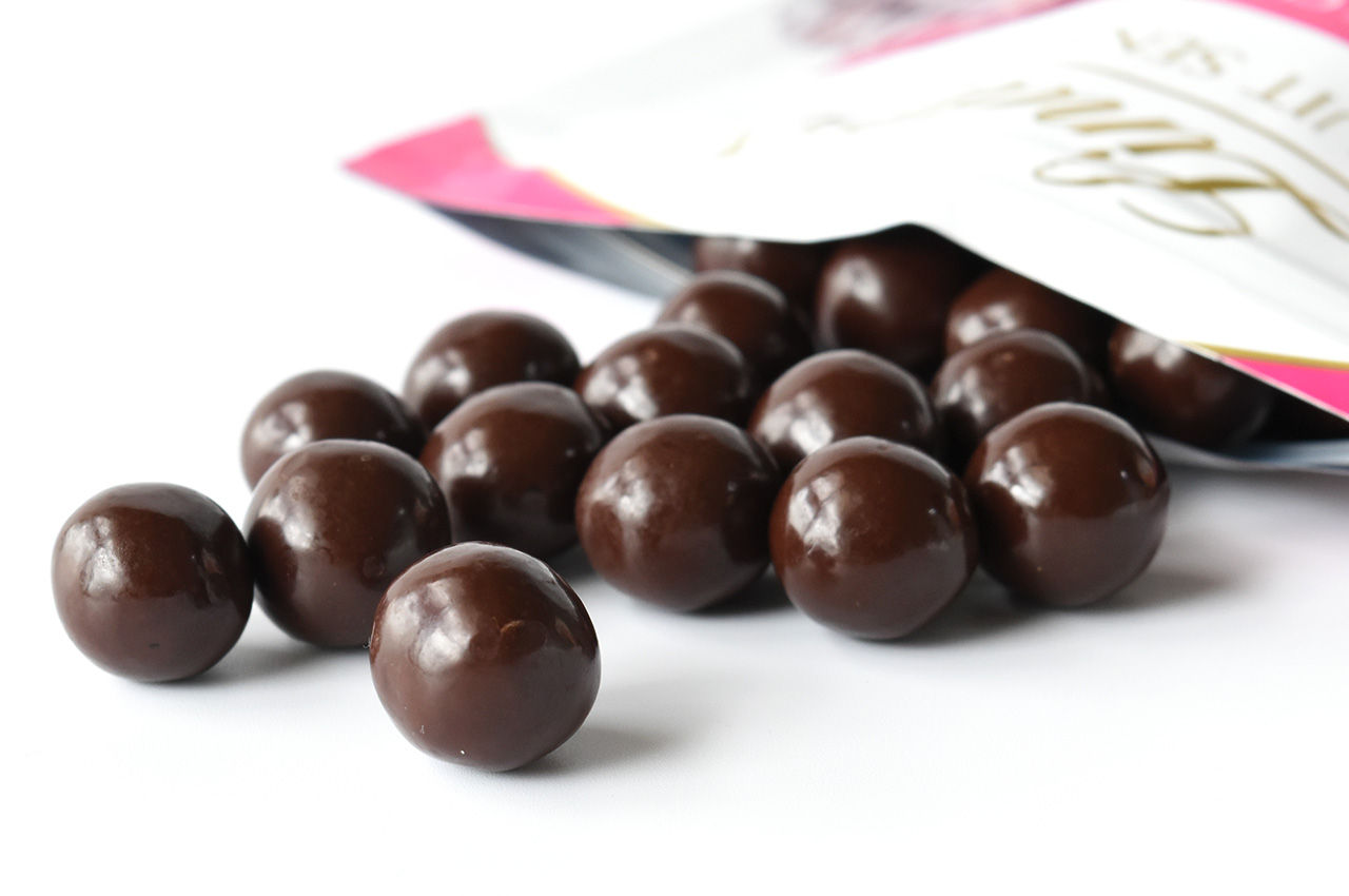 フルーツの美味しさをギュッと凝縮し、チョコレートでコーティングしたボール状のスナックタイプチョコレートです。