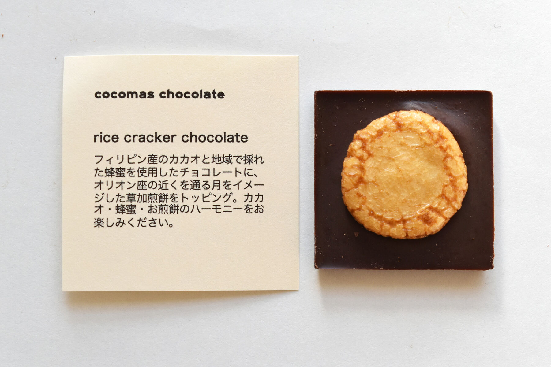 塩気の効いたカリッとお煎餅に、ナッティで素朴なダークチョコレート。